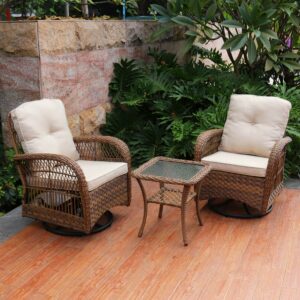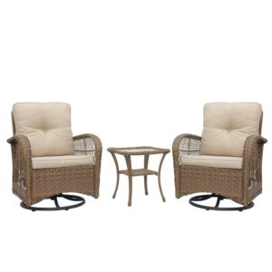 Abble Swivel Conversation 3 Piece Rattan Seating Group Set with Cushions