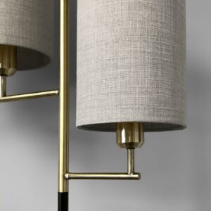 Adesso Davis Floor Lamp Matte Black & Antique Brass Natural Textured Fabric