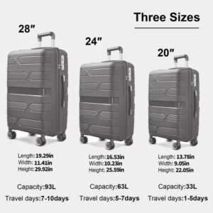AEDILYS 3-Piece Luggage Sets with TSA Lock Spinner Wheels – Hardshell, Lightweight, Carry-On and Checked Suitcases,Grey