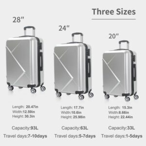 AEDILYS 3 Piece Luggage Sets, ABS Hardshell Hardside Suitcase Set, Silver