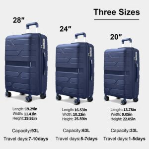 AEDILYS Lightweight Hardside Luggage Set 3 Piece – TSA Lock Spinner Wheels – Carry On to Checked Bags – 360° Mobility,Dark Blue