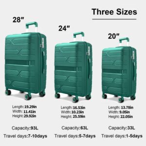 AEDILYS Durable PP Hardside Luggage Set 3 Piece – TSA Lock Spinner Wheels – Carry-On and Checked Suitcases – Secure Travel,Green