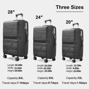 AEDILYS 3 Piece Luggage Sets, ABS Hardshell Hardside Suitcase Set, Black