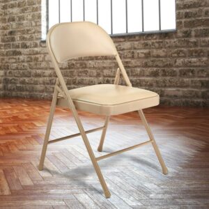 (4 Pack) Commercialine Beige Vinyl Upholstered Folding Chair