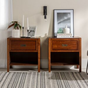 (Set of 2) Annabelle One Drawer Storage Nightstands by Walker Edison, Walnut