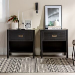 (Set of 2) Annabelle One Drawer Storage Nightstand by Walker Edison, Black