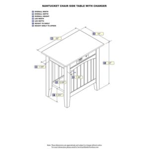 AFI Nantucket Chair Side Table with Built-in Charger Driftwood Brushed