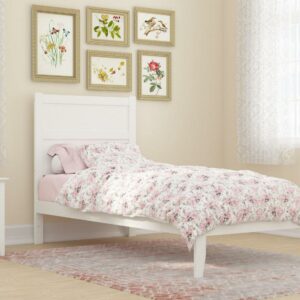 AFI Madison Twin Solid Wood Foundation Bed with Panel Headboard, White