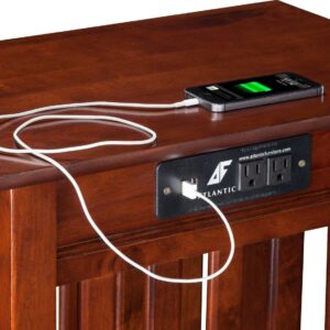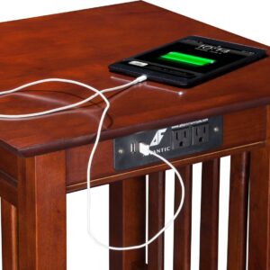 AFI Mission Solid Wood Side Table with Built-in Charging Station, Walnut