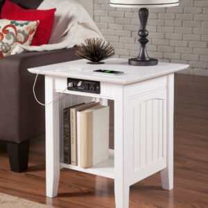 AFI Mission Solid Wood End Table with Built-In Charging Station, Walnut