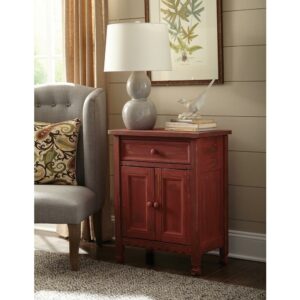 Alaterre Furniture Country Cottage Accent Cabinet, Antique Farmhouse Style Shelf and Square Turned Legs, Pine/Acacia Hardwood for Living Room, Red