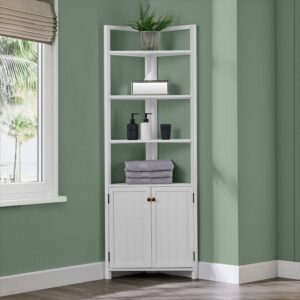 Alaterre Furniture Dover 25″W x 68″H Corner Storage Cabinet with 2 Doors and Open Shelving