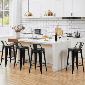 Alden Design 26″ Metal Counter Bar Stools with Low Back for Home Bar, 4pcs, Black
