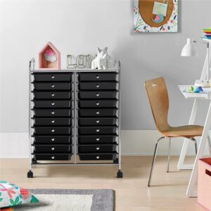 Alden Design 20 Drawers Metal Frame Storage Cart Rolling Bin with Lockable Wheels, Black