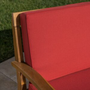 Aletta Outdoor Acacia Wood Loveseat and Coffee Table Set with Cushions, Teak, Red
