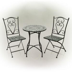 Alpine Corporation 3-Piece Metal Mosaic Tile Bistro Set, Green & Black