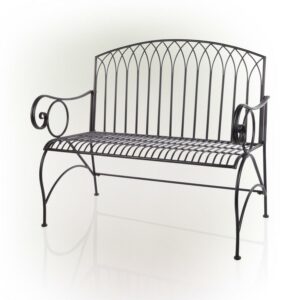 Alpine Corporation 44″ x 26″ x 38″ Decorative Metal Wire Garden Bench, Black