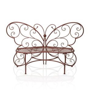 Alpine Corporation 62″ x 26″ x 38″ Outdoor or Indoor Steel Butterfly Garden Bench, Red