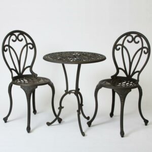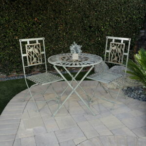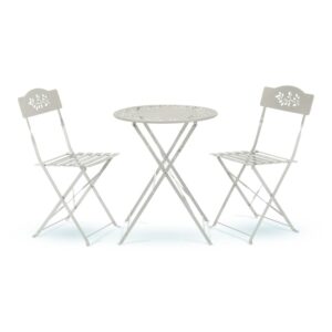 Alpine Corporation Birding Outdoor Patio Bistro Set, Metal 3-Piece Set, Silver