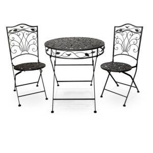 Alpine Corporation Bird and Leaf Outdoor Patio Bistro Set, Metal 3 – Piece Set, Brown