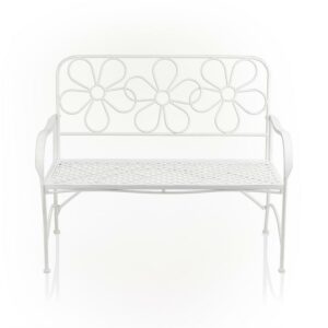 Alpine Corporation Daisy Metal Garden Bench, White