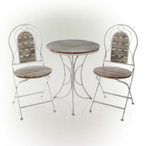 Alpine Corporation Indoor/Outdoor 3-Piece Bistro Set Folding Table and Chairs Patio Seating, White