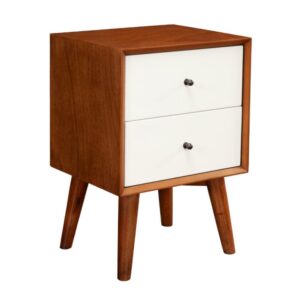 Alpine Furniture Flynn 2 Drawer Two Tone Wood Nightstand in Acorn-White