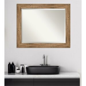 Amanti Art Beveled Wood Bathroom Wall Mirror – Rustic Pine Black Narrow Frame Rustic Pine Black Narrow Outer Size: 31 x 25 in