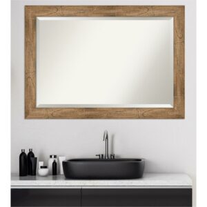 Amanti Art Beveled Wood Bathroom Wall Mirror – Owl Brown Frame Outer Size: 46 x 36 in