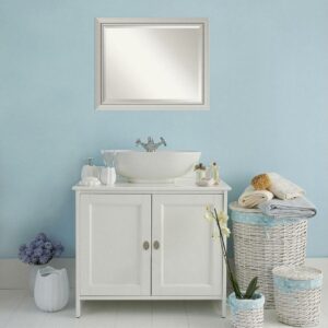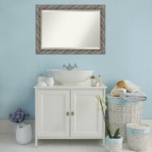 Amanti Art Beveled Wood Bathroom Wall Mirror – Romano Silver Narrow Frame – Outer Size: 32 x 26 in