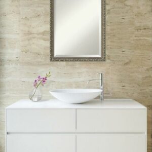 Amanti Art Beveled Wood Bathroom Wall Mirror – Parisian Silver Frame Outer Size: 18 x 22 in