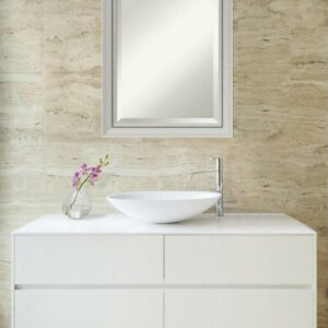Amanti Art Beveled Wood Bathroom Wall Mirror – Romano Silver Narrow Frame Outer Size: 20 x 24 in