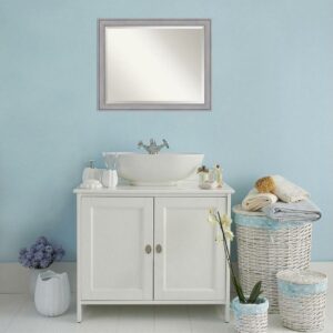 Amanti Art Beveled Wood Bathroom Wall Mirror – Greywash Frame – Outer Size: 31 x 25 in