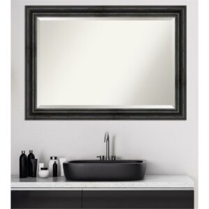 Amanti Art Beveled Wood Bathroom Wall Mirror – Rustic Pine Black Narrow Frame Rustic Pine Black Narrow Outer Size: 43 x 33 in