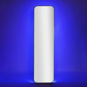 American Art Decor Black Metal LED Floor Full Length Long Mirror with Easel, Remote, and USB Cable – 66″ x 17″ x 1.5″