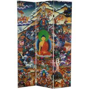 Oriental Furniture 6 ft. Tall Double Sided Buddha Canvas Room Divider – 3 Panel