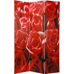 Oriental Furniture 6 ft. Tall Double Sided Roses Room Divider – 3 Panel