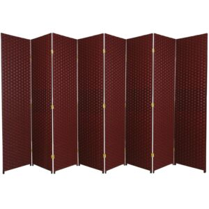 Oriental Furniture 6 ft. Tall Woven Fiber Room Divider – 8 Panel – Red/Black