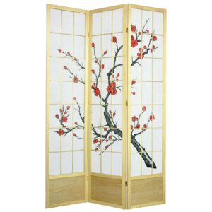 Oriental Furniture 7 ft. Tall Cherry Blossom Shoji Screen – Black – 3 Panel