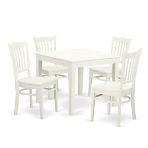 OXGR5-LWH-W 5 PC Kitchen Table and 4 Wood Dining Chairs in Linen White