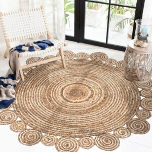 Ox Bay Cora 4′ Round Beige and Brown Braided Circles Jute Indoor Area Rug