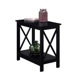 Oxford Flip Top End Table with Charging Station in Black Wood Finish
