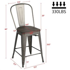 Pack of 4 Metal Bar Stools Counter Stool with Wood Top/Seat and High Back Indoor/Outdoor, Metal
