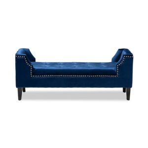 Perret Modern and Contemporary Royal Blue Velvet Fabric Upholstered Espresso Finished Wood Bench