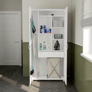 Polifurniture Santa Fe 74 in. 2 Door Storage Cabinet with 1 Drawer and 6 Cubbies, White Finish