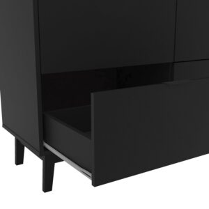Polifurniture Victoria Modern 6 Drawer Wood Double Dresser with Metal Handles, Black
