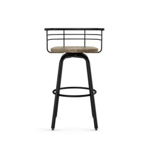 Amisco Brisk 30 In. Swivel Bar Stool – Beige Distressed Wood / Black Metal