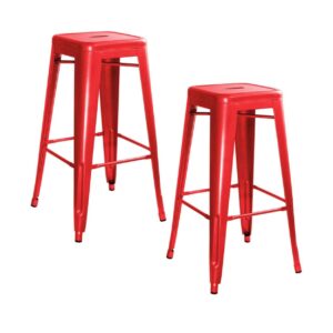 AmeriHome Acacia Wood Top Pub Table with 4 Red 30 inch Backless Bar Stools