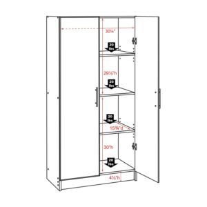 Prepac Adjustable Shelves Cabinet – Functional Tall Garage Table, 16″D x 32″W x 65″H Freestanding Garage Cabinet with 2-Doors, Light Gray – GES-3264