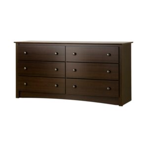 Prepac Fremont Bedroom Furniture: Espresso Double Dresser for Bedroom, 6-Drawer Wide Chest of Drawers, Traditional Bedroom Dresser, EDC-6330-V, 59″W x 16″D x 29″H